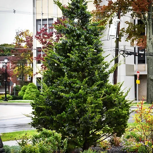 The Emerald Sentinel™ Juniper will reach 15 feet within 10 years, but be just 5 feet wide, with a dense, upright conical form. Its fluffy foliage is bright emerald-green, darkening in summer, but never becoming bluish or silvered. It grows well everywhere, and it is the perfect plant for low-maintenance and ‘water-wise’ gardens, as well as a natural for native and wild gardens. Yet it can be trimmed into formal shapes, from columns to poodles, and made into a dense hedge or screen. After a few years, plants begin to produce big crops of blue berries covered with a whitish coating, and these are very attractive against the green leaves.