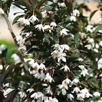 The Evening Light Japanese Snowbell is a small deciduous specimen tree with very dark-purple leaves that keep their color from spring to fall. In early summer it is festooned with clusters of hanging white bell-shaped flowers that are sweetly fragrant. These are followed by brown-green fruits like olives that last into fall and are eaten by songbirds. Easy to grow, this tree is perfect as a lawn specimen, at the back of shrub beds, in sunny parts of woodlands and in Asian-style gardens.
