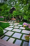 Mondo Grass is a shade-loving grass-like ground cover that creates a beautiful carpet of narrow, rich-green leaves all year round. It can be used to replace grass in shady spots, to edge beds and pathways, and it is an essential component of Japanese gardens, planted beside rocks and water features, or in any shady corner. It grows from zone 7, and often survives in sheltered spots in zone 6 as well. In warmer areas it is completely evergreen. In summer short spikes of whitish-lavender flowers will be seen, and these become blue-black berries in fall, adding interest. This easily grown plant has so many uses around the garden, and adds a richness and completeness to your planting, in any style of garden.