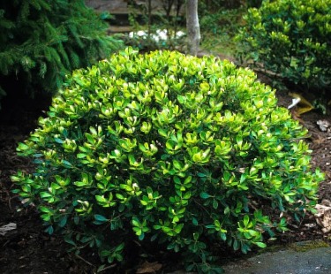 You may not at first realize it is a holly, since the leaves are smooth and spineless. Choose a smaller, denser selection – the Compact Inkberry is a good one – as the wild tree can become a bit large and need regular trimming. The Compact Inkberry stays just 4 or 5 feet tall, and its bushy form fills spaces effectively, along a stream, or in any wet soil, as well as in ordinary to dry soil. This undemanding plant will grow in sun or shade too, and it looks good in a wild garden or in a more organized one, where an occasional trim will keep it suitably neat. Reflecting its wide distribution across the country, from Nova Scotia to Florida, you can grow this bush almost anywhere, from zone 4 to zone 9.