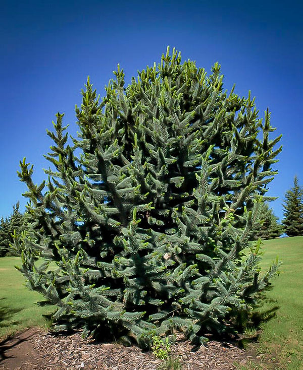 The Rocky Mountain Bristlecone Pine should be planted in full sun, in well-drained soil. Once established it is highly drought resistant, and it thrives in rocky, sandy and gravel soils. Do not plant in poorly-drained or moist soil. It needs no special care or pruning. Note that the white flecks on the needles are part of the charm and character of this tree, and not signs of insects. In fact, this tree rarely has any pest or disease problems at all. In time this tree can reach 20 feet tall or even more, so as with all dwarf evergreens, allow enough room when planting for its final size.